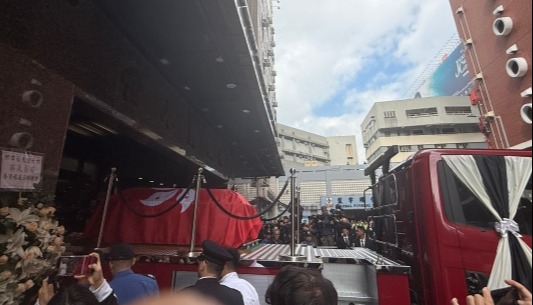 香港新聞網12月19日電 (記者 譚暢)香港消防處19日在九龍紅磡世界殯儀館,為已故消防隊目(追授)何偉豪舉行最高榮譽喪禮。