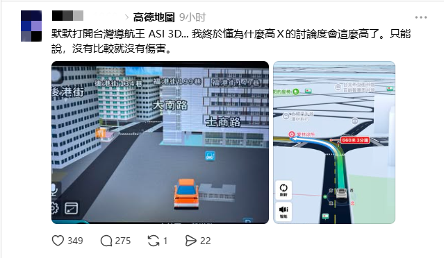 台灣媒體人平秀琳對此表示,民進黨一連串的政治動作,反而讓高德地圖爆紅,成為下載排行冠軍,真是結結實實“幫高德地圖打了一波廣告”。 其實,在爭議爆發前,台灣地區蘋果系統下載平台上的高德地圖原本就有4.5萬個評分,說明台灣本就有一群追求導航精準度的“老司機”用戶。這些老用戶也調侃道,雖然早就有很多人知道高德地圖,但還是感謝台當局的“逆向宣傳”。 在主動充當“自來水”的老用戶的分享和台當局“反向安利”之下,許多充滿好奇的台灣民眾下載了高德地圖。他們下載軟件後,對高德地圖進行了實測,並積極在社媒平台上分享使用體驗。 這兩天,台灣熱門社媒平台Threads湧現出大量的高德地圖測評帖文,許多台灣網友如同“打開新世界的大門”,直呼“真香”“很好用”。 不少台灣網友表示,如果不是“托民進黨的福”,自己還真不知道高德地圖這麼好用,簡直比谷歌地圖還厲害。有網友直言,自己是看了新聞報道後才下載高德地圖,“沒想到真的被驚艶到!”不僅導航界面超直觀,紅綠燈倒計時功能也讓人很有感,而且還可以自選林志玲的語音包,讓人開車心情瞬間變好,“這APP真的太強大了!”