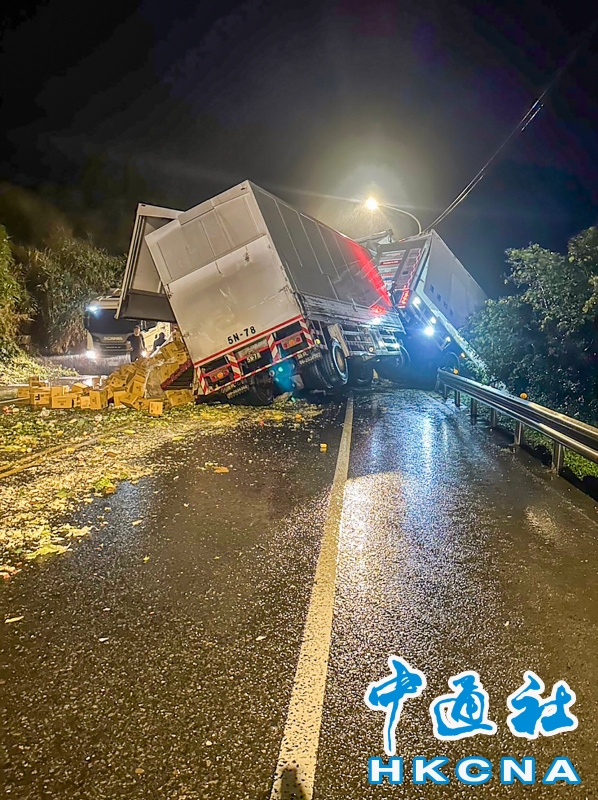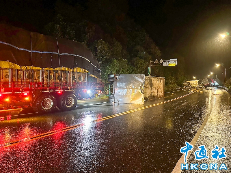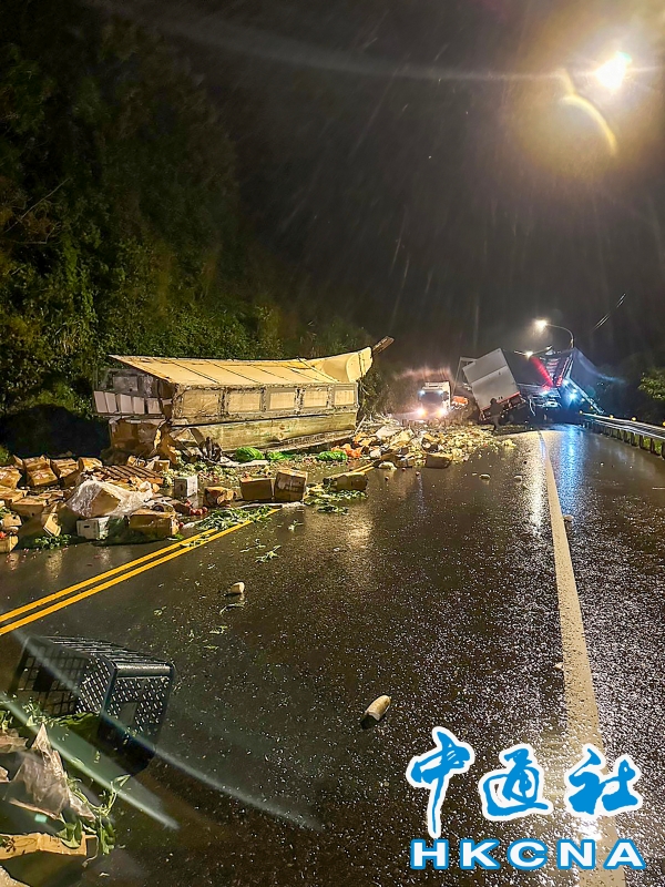 台2線聯結車翻車 滿地蔬菜礦泉水分享到: