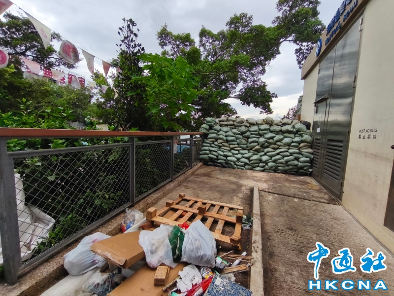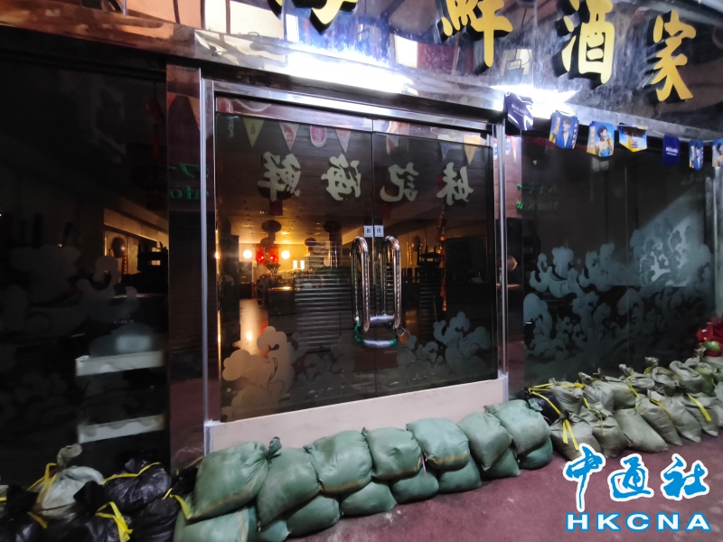 香港八號暴風信號 商戶堆沙包防水浸分享到: