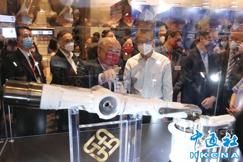 •   10月22日,香港特區政府創新科技署主辦的“創新科技嘉年華2022”開幕,活動以“創科力量 夢想啟航”為主題,期望透過一系列富有趣味性的活動,提升市民對創科的興趣及認識,推廣創科文化。圖為香港特區政府財政司司長陳茂波參觀香港理工大學研發的月球表取採樣執行裝置。 (香港中通社記者 謝光磊 攝) 香港中通社圖片