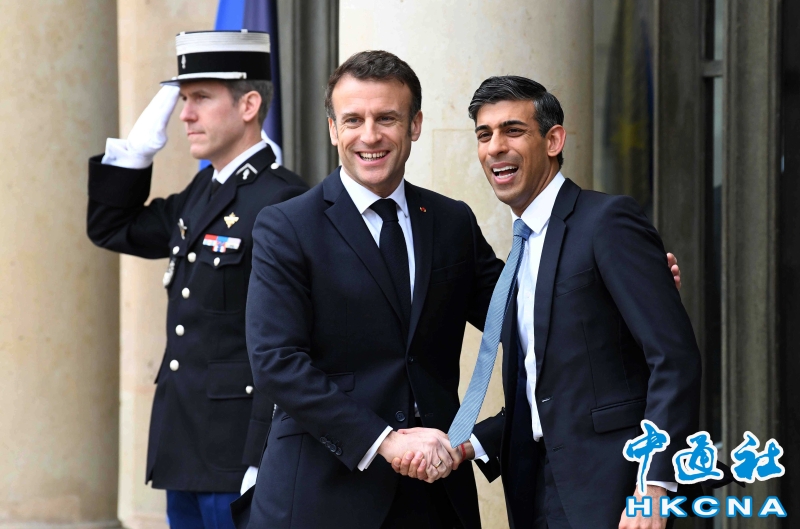 •   當地時間3月10日,法國總統馬克龍在巴黎愛麗舍宮會見英國首相蘇納克。他們共同出席當天舉行的法英峰會。 香港中通社圖片
