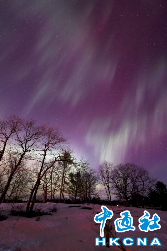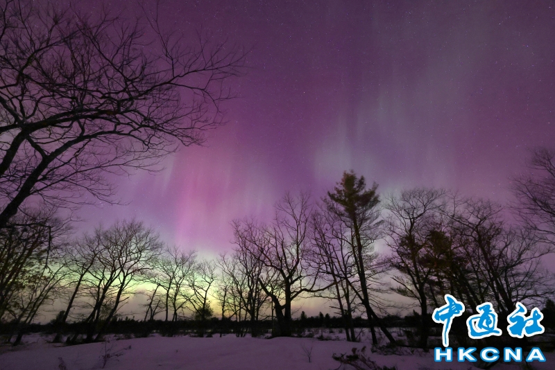 •   當地時間3月23日夜,絢麗的極光出現在加拿大多倫多北部的格雷文赫斯特(Gravenhurst)上空。在多倫多及其周邊地區所處的中緯度地帶,極光亦是不多見的天文現象。 香港中通社圖片
