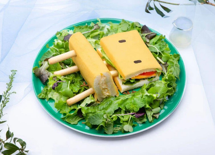 鹹食餐點提供了,因被大臣詛咒而讓草太變成椅子的“鈴芽的椅子三明治”;還原了鈴芽在酒館幫忙時,所製作的“馬鈴薯沙拉烏龍麵”;“要石茶漬飯”則以片中封印“門”的石頭為意象製作而成。