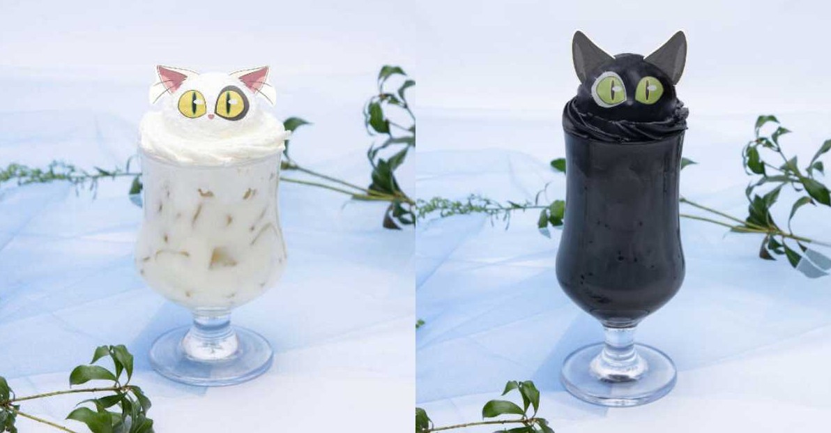 絕不能錯過的,還有貓咪“大臣”和“左大臣”的漂浮飲料!以“杏仁奶”、“焙茶牛奶”為底,除了在冰淇淋上裝飾兩隻貓咪的眼睛和耳朵外,更使用了“竹炭”來還原左大臣的黑色。