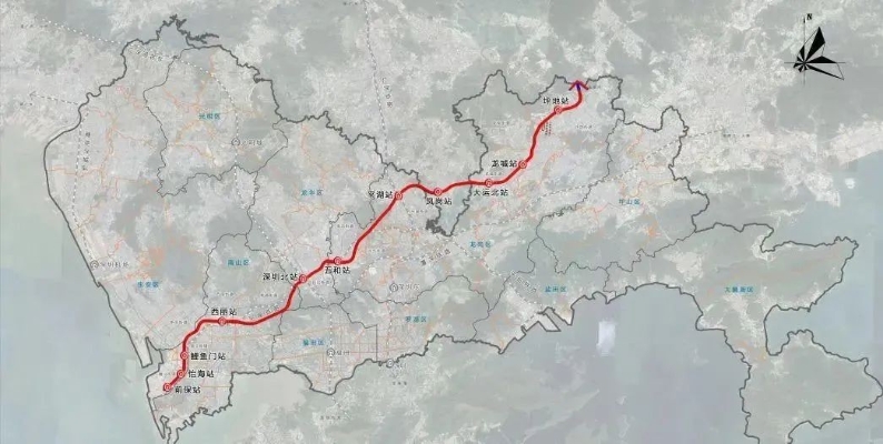 其中,深惠城際鐵路連接深圳、東莞和惠州,是粵港澳城際鐵路交通網的重要組成部分。全線設11座車站,均為地下站。項目於2021年12月開工建設,預計完工時間為2026年12月。