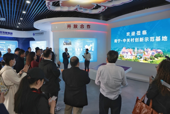 海外華文媒體采訪團參觀南寧·中關村創新示範基地協同創新示範展示中心。
