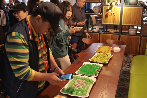 海外華文媒體采訪團品嚐印尼特色小吃。