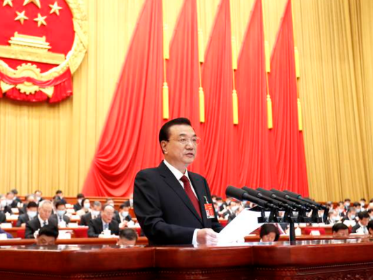 李克強在政府工作報告中指出,要堅持對台工作大政方針,貫徹新時代黨解決台灣問題的總體方略,堅持一個中國原則和“九二共識”,推進兩岸關係和平發展和祖國統一。堅決反對“台獨”分裂行徑,堅決反對外部勢力干涉。兩岸同胞要和衷共濟,共創民族復興的光榮偉業。