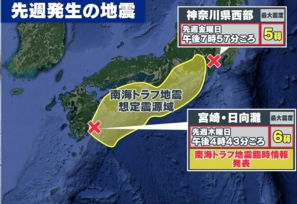 而且,日本氣象廳經評估指出:未來一周左右,南海海槽發生的大地震的可能性較平時提高。呼籲民眾在未來一周提高警惕、做好防備。