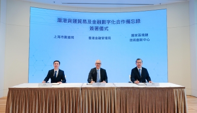 香港金融管理局、上海市數據局與國家區塊鏈技術創新中心2日宣布已共同簽署《滬港貨運貿易及金融數字化合作備忘錄》,以進一步推動滬港兩地在數字化賦能貨運貿易及金融等領域的深入合作。
