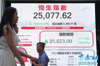 港股三日累跌後回穩,8月最後一個交易日反彈。恒指29日收報25077點,升78點或0.32%;大市全日成交3356億港元。全周計,恒指累跌1.03%;8月累升304點或1.23%,連續4個月錄得升幅。