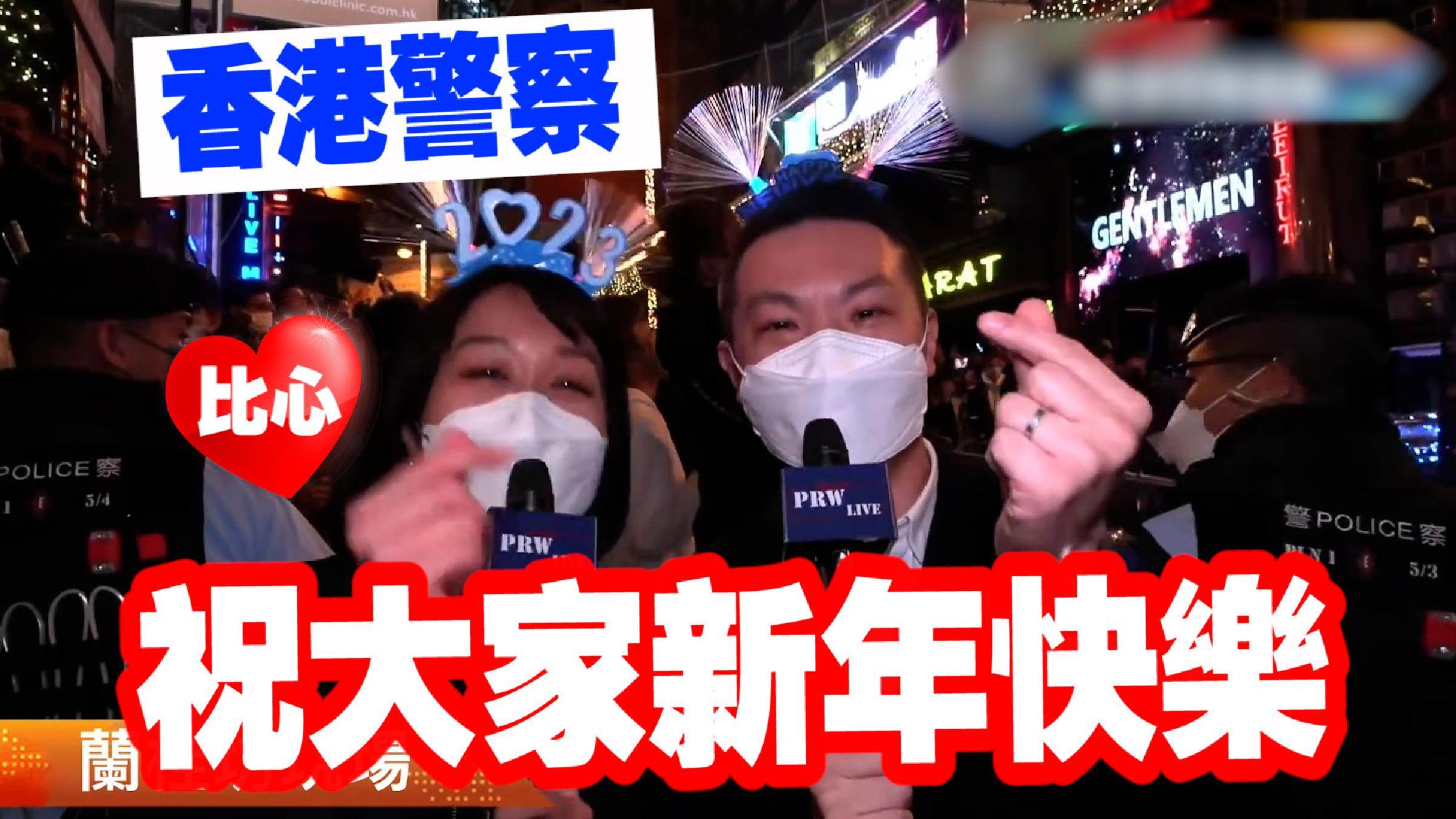 香港警察現身蘭桂坊 化身祝福小哥祝你新年快樂