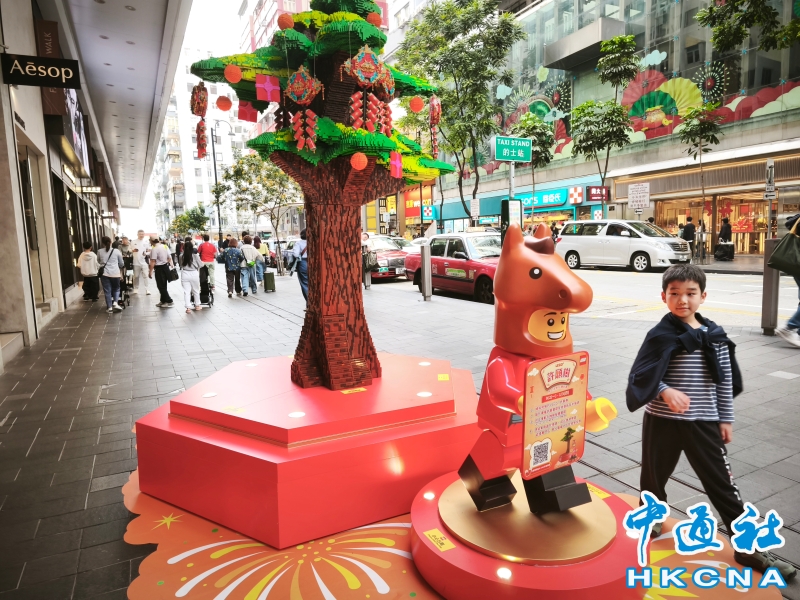 •   LEGO 香港於新春期間在銅鑼灣百德新街展出了全港首棵實體互動許願樹。民眾可以透過手機掃描二維碼,將自己的樣子化身為「許願橙子」祝福卡,並模擬「拋寶牒」的方式向樂高許願樹祈福。香港中通社圖片