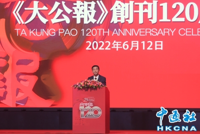 大公報創刊120周年 習總書記發來賀信! 【解說】2022年是香港回歸祖國25周年,亦是《大公報》創刊120周年,為紀念這一重要歷史時刻,6月12日下午2點,《大公報》創刊120周年慶祝儀式在香港會議展覽中心舉行,香港特區行政長官林鄭月娥、香港中聯辦主任駱惠寧、香港特區候任行政長官李家超、駐港國安公署署長鄭雁雄、外交部駐港公署特派員劉光源、香港特區政府律政司司長鄭若驊、香港中聯辦副主任盧新寧、紫荊文化集團董事長毛超峰和香港大公文匯傳媒集團董事長姜在忠等步入會場,出席慶典。