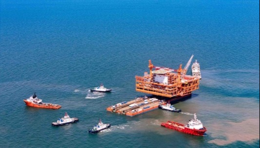 據介紹,“海油觀瀾號”平台由3個邊立柱和1個中心柱組成,邊長超80米,高約35米,重近4000噸,風機將安裝在中心立柱上。該平台將安裝於距海南文昌136千米的海上油田海域。該海域風急浪高,為全球首座水深超100米,離岸距離超100公里的“雙百”海上風電項目。項目投產後,風機所發電力通過動態海纜接入海上油田群電網,用於油氣生產,年發電量可達2200萬千瓦時,可節約燃料氣773萬立方米,減少二氧化碳排放2.2萬噸。 【編輯:丘志彬】