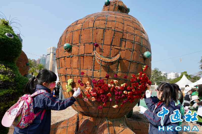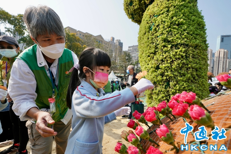 約千名學生為香港花卉展覽鑲嵌大型花壇分享到: