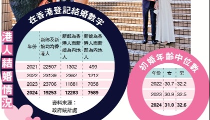 香港新聞網6月12日電 中國民政部最新數據顯示,去年中國結婚登記人數683.3萬對。這一數據創下了1986年(民政部網站公佈有1986年以來的數據)來的新低,亦是連續第9年下跌。