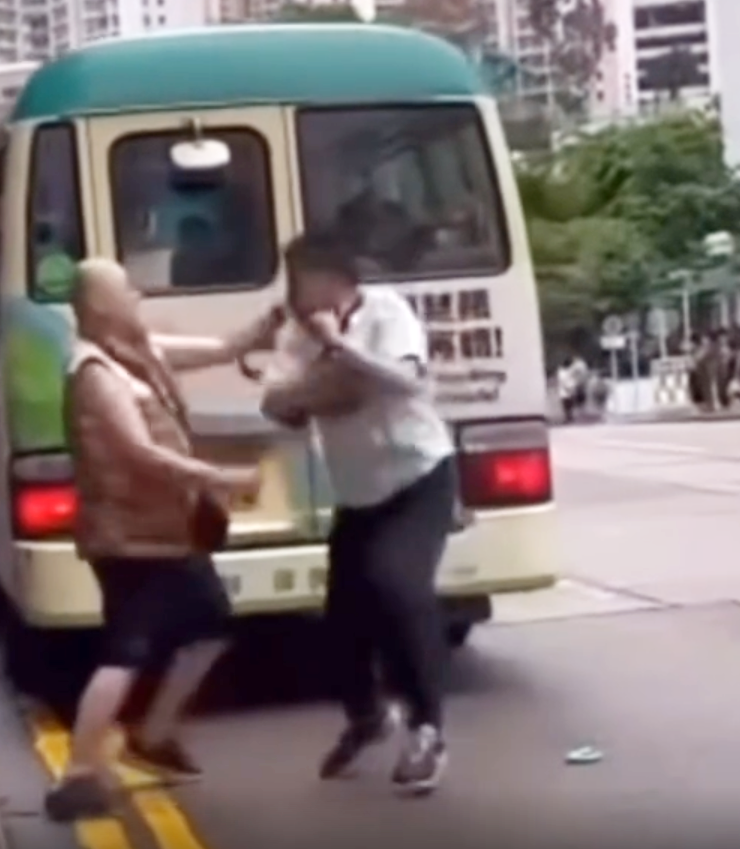 影片截圖。 雙方更由“黐手”改為揮拳互毆,戰況激烈。激戰近20秒後,兩人始肯停手,然後轉身離開。 影片引起大批網友討論,有人留言稱“阿伯好像會詠春拳”、“黐手實戰示範”,“第一次看到有人當街打架用‘黐手’”、“葉問外傳”。不過亦有不少網友痛斥兩人在馬路打鬥危險。 (完) 【編輯:孟宜君】