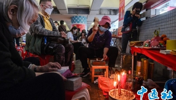 3月5日,是二十四節氣中的“驚蟄”,香港銅鑼灣鵝頸橋下一如既往的熱鬧,來打小人的市民排起了長隊,擊打聲此起彼伏,打小人攤子前擺放著各路神像,神像前有祭拜的燭火與水果供品。“驚蟄”代表天氣回暖,雨水增加,萬物被春雷乍動而驚醒,也喚醒了千千萬萬的蛇蟲鼠蟻等害蟲,相傳這一天拜祭“百獸之王”白虎,便能夠鎮壓害蟲及驅除百邪千害,廣東、香港一帶則慢慢演變成在驚蟄“祭白虎”及“打小人”。(香港中通社記者 曹文毓攝)