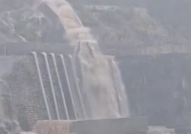 清水灣銀岬路一條樓樓梯,雨水如瀑布傾瀉而下。 (圖源:香港01)