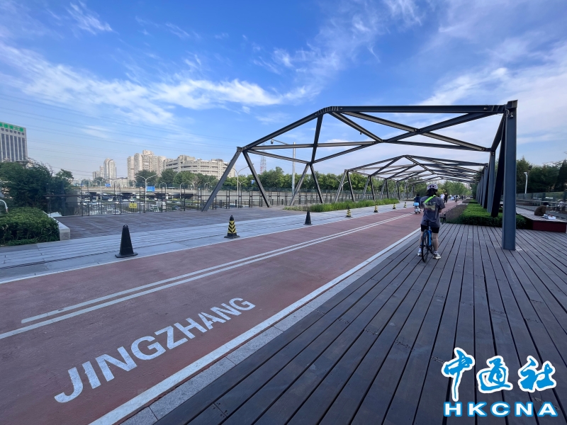 京張鐵路遺址公園,由高架橋改造的“日落客廳”。 香港中通社圖片 住在附近的居民陳凱指著標識牌說,“這里原來是京張鐵路的一處道口,一直有火車經過,十分吵鬧,但現在安靜了,因為環境改善了。” 陳凱口中的京張鐵路,建成於1909年,是第一條由中國人自主設計建造的國有幹線鐵路,其主線穿北京城區而過,因其第五個道口與主街道相交,此交叉處得名“五道口”。“以前經過這里,經常要停下來等火車先通過,很不方便,行人避之不及。”陳凱說。 為此,北京官方花了大力氣來改造。從“五道口”站步行3分鐘,就能看到一條鐵路小徑,銅質雕塑似門,京張鐵路舊枕石鋪路,兩側鮮花簇擁。隨著京張鐵路部分入地,位於交叉處的既有地上舊線,被改造為“京張鐵路遺址公園”。 “現在,不僅行人暢行無阻,而且還成了一處鬧中取靜的休閑好去處。”陳凱說,鐵路護欄、老鐵軌、枕木、水鶴等鐵路元素穿插在公園中,景觀氣質獨特,吸引不少青年和附近居民聊天小憩。