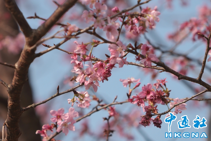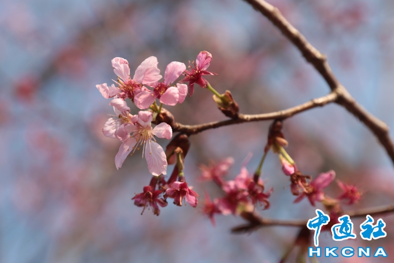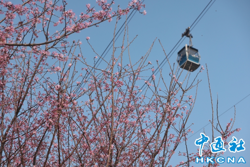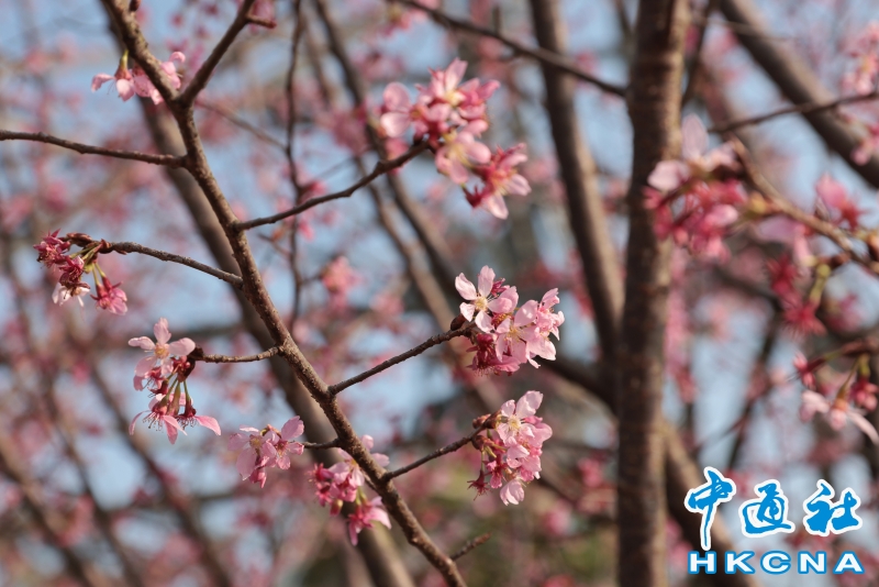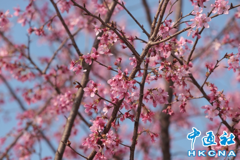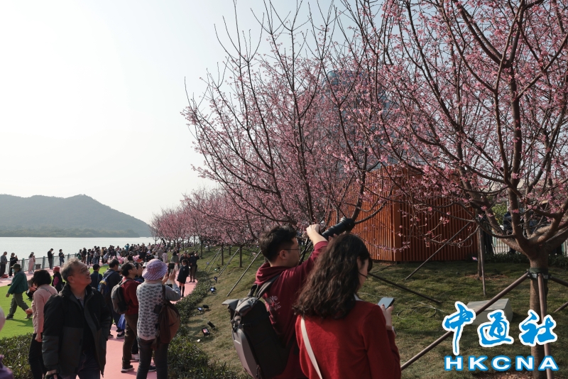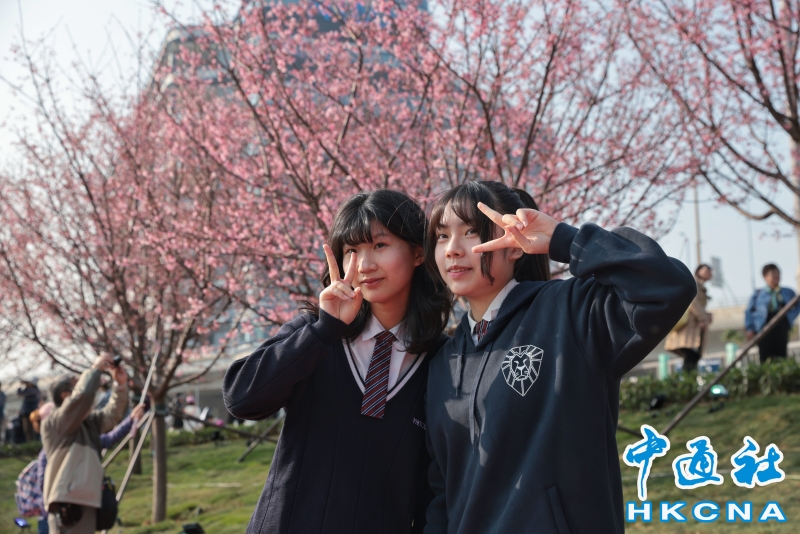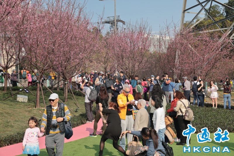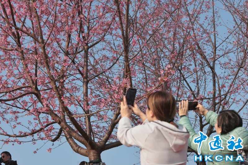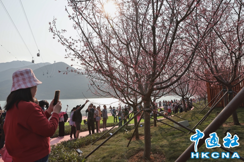 2月20日,大批香港市民和遊客在位於赤鱲角機場島的“櫻花海岸”觀賞櫻花。“櫻花海岸”在東涌灣畔種了約30棵櫻花樹,若加上旁邊的舊櫻花園,合共會有超過100棵,配上臥椅、步行道等設施,成為市民春天賞花休閒的熱門地點。(香港中通社記者 謝光磊 攝) 香港中通社圖片