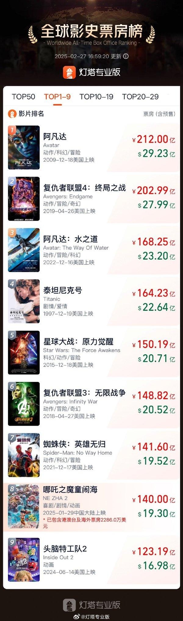 《哪吒2》票房再突破 將進入全球影史前七分享到: