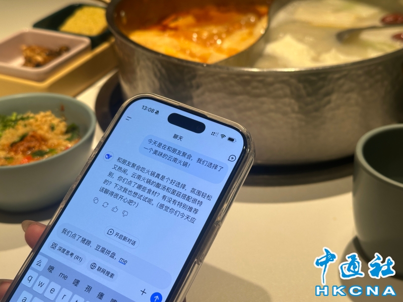 •     2025年3月2日,北京市火鍋店內,一女子正在與deepseek“男友”聊天,分享日常。 香港中通社圖片