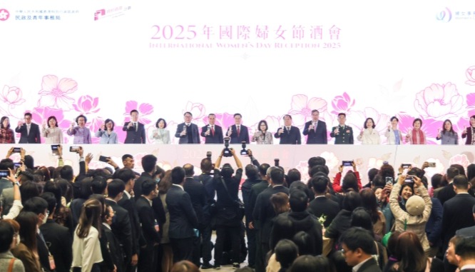 3月8日,香港特區行政長官李家超及夫人李林麗嬋於政府總部,連同其他主禮嘉賓主持民政及青年事務局與婦女事務委員會舉辦的2025年國際婦女節酒會。(香港中通社記者 曹文毓攝) 今年亦是聯合國第四次世界婦女大會在北京召開30周年。李家超指,30載春雨潤澤,全球各地在婦女權益保障、性別平等方面取得顯著進展。國家始終將婦女事業放在國家發展的重要位置,香港是國際大都會,不論男女都有平等的發展機會,女性佔香港人口54%,是大多數。 李家超亦指,他的管治團隊中有7位女局長,佔15位局長近半數,比例是歷屆問責班子中最高;女性文職公務員比例已達49%,常任秘書長更有六成是女士。香港多年來在政府效率排名中位列全球三甲,女性公務人員功不可沒。 藉“三八”婦女節,李家超以三種花朵向香港女性送上美好祝願,願她們如紫荊芬芳,弘揚家庭美德;如木棉挺拔,在崗位上勇闖高峰;如紅梅傲雪,說好香港故事。 特區政府民政及青年事務局局長麥美娟致辭表示,香港在婦女發展方面取得顯著成就,包括2023年成立婦女自強基金以來,共撥款超過3680萬港元,資助超過240個項目;推出一站式家庭及婦女資訊平台;為本地女大學生配對女性領袖作為“友師”的“‘友’妳啟導”計劃,現已招募約50人等。 麥美娟亦向所有在家庭中默默付出,在社會中勇敢擔當的女性致以最崇高的敬意,並指期待與支持婦女發展的每一位繼續攜手奮進,促使女性在社會、生活各方面充分獲得應有的地位、權利及機會。 今次酒會由特區政府民青局和婦女事務委員聯合舉辦,中央政府駐港聯絡辦副主任劉光源、外交部駐港公署副特派員潘雲東、解放軍駐港部隊政治工作部副主任王志學、中央政府駐港維護國安公署聯絡局副局長謝志祥、香港立法會主席梁君彥、行政會議非官守議員召集人葉劉淑儀等亦出席主禮。(完) 【編輯:李冉】