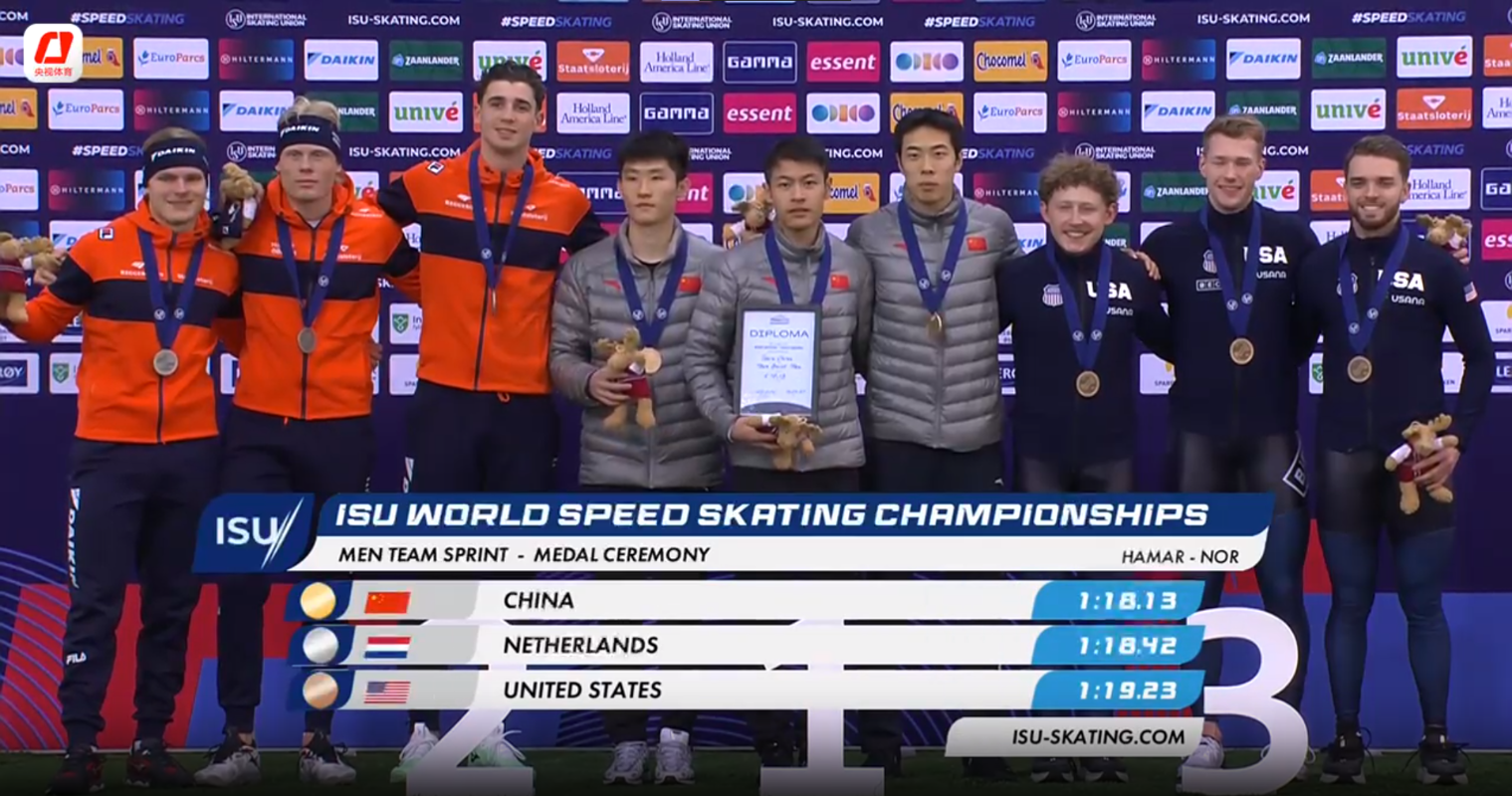 創造歷史!速滑世錦賽中國隊男團奪金