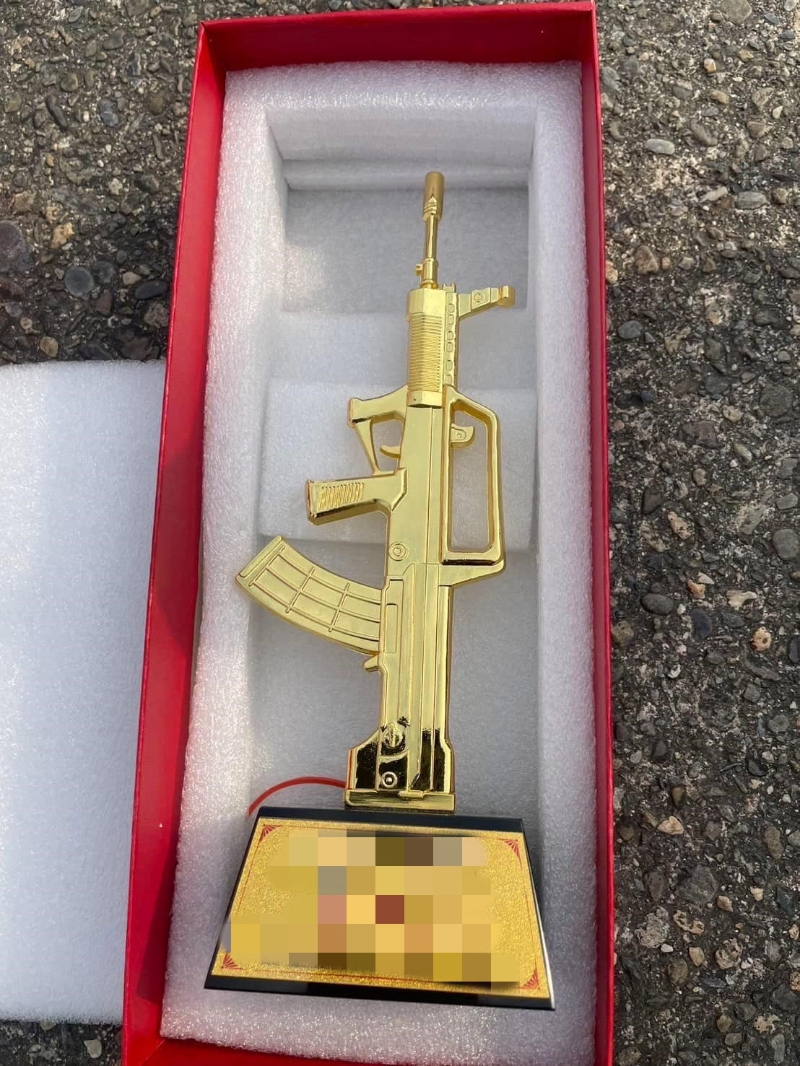 圖片來源:參賽者在臉書(Facebook)發文的配圖 據台媒16日報道,“鳳山跑三校”馬拉松賽事由高雄市和台防務部門共同舉辦,以跑步繞行三所台軍軍校為主題。但在首場比賽頒獎儀式後,獲獎者發現獎杯竟是解放軍列裝的95式自動步槍。據悉,有活動參賽者在臉書(Facebook)發文表示,主辦單位頒給獲獎者的獎杯,竟是一把金色解放軍步槍造型,此舉讓參賽者感到傻眼;發文一出,在網路引發議論。 對此,民進黨高雄“立委”許智傑回應表示,針對此次活動,因承辦單位疏失,使用解放軍槍枝造型製作獎杯,已要求立即回收,造成相關單位及民眾困擾,向大家道歉,未來相關活動會更謹慎處理。 負責提供獎杯的高雄市鳳山慢跑協會隨後發表聲明稱,選擇該獎杯是希望用步槍造型體現軍事色彩,另外也覺得該獎杯形狀美觀,并沒有其他用意,後續將為獲獎者更換獎杯。不過,該協會尚未說明這些獎杯是從何處採購的。 為本次賽事提供指導的台防務部門則表示,此前他們僅為賽事提供場地,但沒有關注其他事項,後續他們會注意提醒主辦方。 對此,國民黨高雄市議會第九選區(鳳山區)“議員”李雅靜嘲諷,“活動現場清一色都是民進黨的政治人物,場面熱鬧非凡,但這場所謂的‘愛台灣’活動,最後竟淪為大陸武器的展示舞台?” 李雅靜痛批,民進黨長期以來對不同立場的人狂扣“親中”的帽子,自己卻發放大陸武器造型的獎杯,這是徹底的自打臉。此外,這座獎杯還被爆來自大陸電商平台淘寶,李雅靜酸問,“抗中保台”的戲演了這麼多年,結果竟然是“抗中保台、淘寶買槍”,這樣的雙標行徑,民進黨要如何向台灣人民交代? 此外,資深媒體人董智森也表示,這些荒腔走板的事情,還是會接二連三發生,許智傑道歉是為了止血,再做什麼24下深蹲都沒用了。(綜合環球時報、海峽導報、中央社等) (完) 【編輯:俞丹鳳】