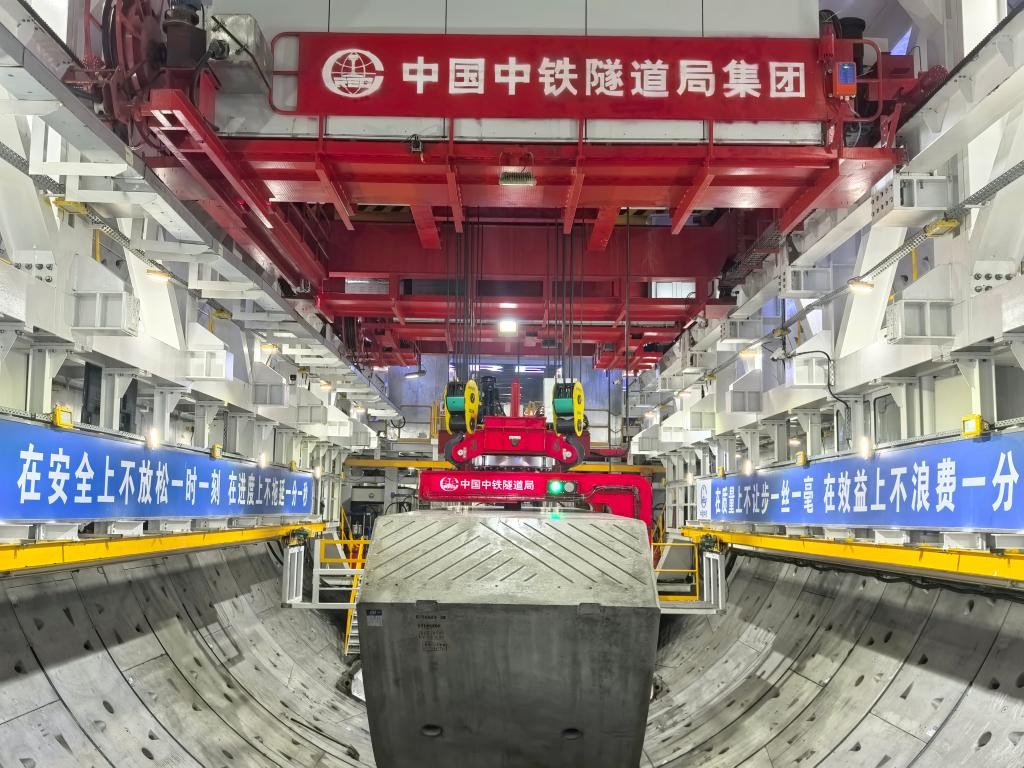 世界最大直徑高鐵盾構機“領航號”在掘進施工。圖源:新華社/受訪者供圖 據新華社報道,崇太長江隧道盾構段採用“領航號”盾構機掘進施工,盾構機刀盤直徑15.4米,是目前世界最大直徑高鐵盾構機。盾構機搭載了智能感知、智能掘進、智能安裝等技術,可以實現“有人值守、無人操作”的智能化施工。 “領航號”盾構機自2024年4月29日始發以來,中鐵隧道局團隊圍繞超大直徑、超長距離、獨頭掘進的施工特點,突破施工難題,推動隧道綜合掘進效率有效提升,平均月進度達到600米。 據了解,崇太長江隧道連接上海市崇明區和江蘇省太倉市,是滬渝蓉高鐵全線控制性“咽喉”工程,隧道全長14.25公里,其中盾構段長13.2公里。設計時速350公里,隧道深入長江水下89米。該隧道由滬杭客專公司建設管理,中鐵隧道局施工建設,項目建成運營後,有望實現高鐵穿越長江不減速。(完) 【編輯:彭玉婷】