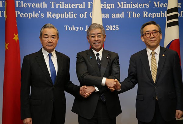香港中通社3月22日電 3月22日,中國外交部長王毅在東京同日本外相岩屋毅、韓國外長趙兌烈共同出席第11次中日韓外長會。 王毅表示,中日韓合作是東亞地區基礎最深厚、機制化程度最高、發展潛力最大的合作架構之一。三國合作啟動20多年來取得積極成果,不僅惠及三國人民和各自發展,也推動了地區穩定與經濟一體化進程。在三方共同努力下,第九次中日韓領導人會議確定的“六大關鍵領域”合作邁出新步伐。事實證明,中日韓合作越實,三國抵禦風險的能力就越強,賦能發展的基礎就越牢,促進人民相知相親也就越見成效。 王毅說,今年是聯合國成立80周年,也是中國人民抗日戰爭暨世界反法西斯戰爭勝利80周年。真誠反省歷史才能切實開創未來。三國應重溫“正視歷史、面向未來”的共識,堅守合作初心,推動中日韓合作發揮“1+1+1>3”的作用,造福三國、地區和世界。 王毅強調,有風有雨是常態,風雨無阻是心態。三國合作要行穩致遠,必須同雙邊關係相互促進、良性循環。尤其要尊重彼此的核心利益,管控好矛盾分歧,在維護良好穩定的雙邊關係基礎上,不斷積累共識、培育動能、深化合作、提升水平。中方願同日韓一道,推動中日韓合作在新形勢下提質升級,更加成熟、更加穩定、更富韌性。