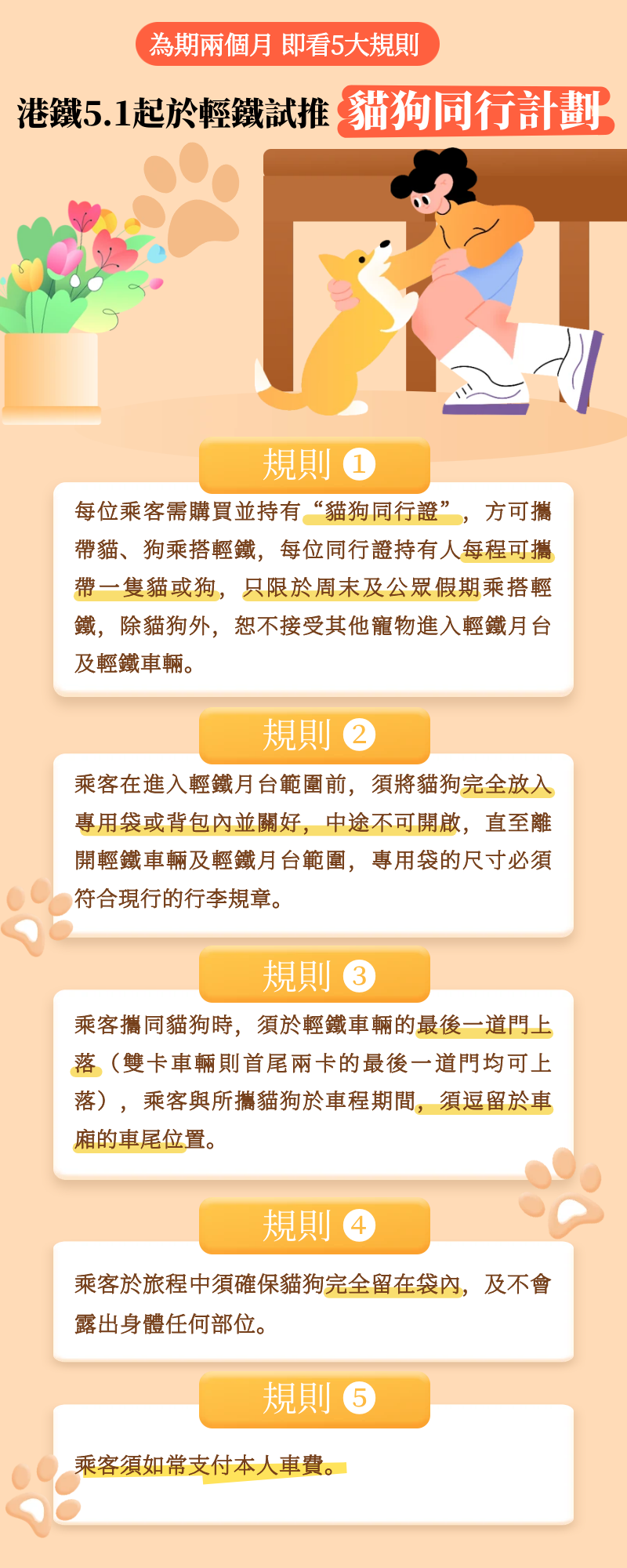 輕鐵5.1起試行“貓狗同行” 圖看出行五大規則分享到: