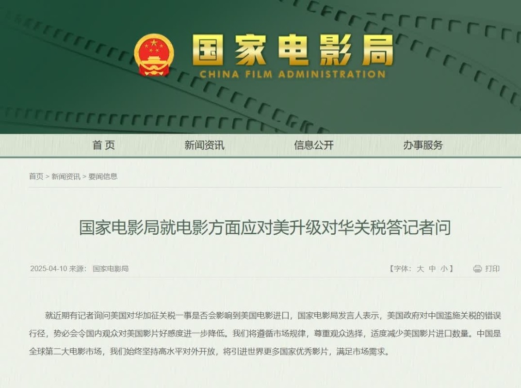 香港新聞網4月13日電 美國總統特朗普全球揮舞關稅大棒,,引發金融市場動盪,還影響到了美國電影行業。在中國國家電影局發出對美國大片的調減訊號後,路透社發文說“好萊塢空前緊張”,擔心巨大的中國電影市場之門被關上。 中國國家電影局10日表示,美國政府對中國濫施關稅的錯誤行徑,勢必會讓中國國內觀眾對美國影片好感度進一步降低,將遵循市場規律,尊重觀眾選擇,適度減少美國影片進口數量。