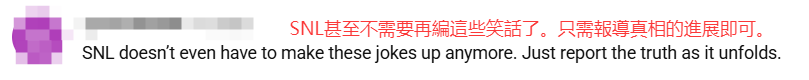 還有網友銳評:《周六夜現場》甚至不需要再編笑話了,只需報道現實的進展即可。