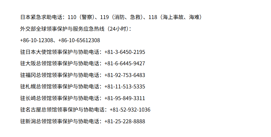 相關保護與協助電話 圖源:中國駐日本大使館官網截圖 【編輯:彭玉婷】