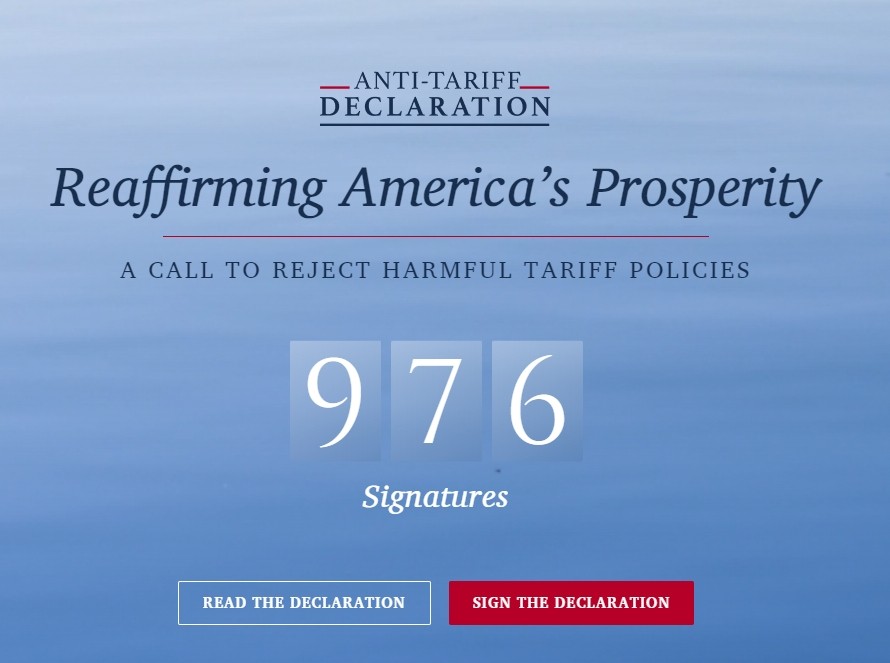 網站截圖 據報道,“反關稅宣言”警告稱,撤銷特朗普政府在貿易方面“不連貫和破壞性政策”迫在眉睫。“關稅的支持者將這些措施描述為‘經濟解放’行為。但其實,關稅顛覆了曾引領美國主導的自由與繁榮時代的自由原則。” “當前政府征收關稅的動機是對普通美國人所面臨經濟狀況的錯誤理解,我們預計,美國工人將承受這些錯誤政策所帶來的後果,包括物價上漲和自找的衰退風險。”“反關稅宣言”中寫道。 據報道,簽署“反關稅宣言”的知名人士包括諾貝爾獎得主詹姆斯·赫克曼和弗農·史密斯,美國前總統小布什的總統經濟顧問委員會主席曼昆,經濟學家、得克薩斯州前共和黨參議員菲爾·格拉姆等。 簽署者尤其批評了特朗普所謂的“對等關稅”。“反關稅宣言”中寫道:“美國威脅并對其它國家征收的‘對等關稅’稅率是用一種錯誤的臨時公式計算出來的,沒有任何的經濟現實依據。” “反關稅宣言”補充說:“我們仍然希望,健全的經濟原理、經驗證據以及歷史的警示,將戰勝當前的保護主義神話。” 據報道,白宮沒有立即回應《商業內幕》的置評請求。