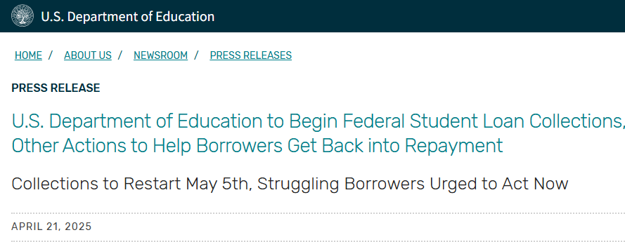 美國教育部新聞稿:教育部將開始追收聯邦學生貸款,并採取措施讓借款人恢復還款 根據美國教育部當天發布的文件顯示,目前4270萬借款人欠下的學生債務超過 1.6 萬億美元,只有38%的借款人正在償還學生貸款。其餘大多數借款人要麼拖欠還款,要麼處於免息寬限期,要麼處於免息延期。 其中,超過500萬借款人已逾期360天以上未償還月供,處於違約狀態(許多人違約時間超過7年),另有400萬借款人處於嚴重逾期階段(91-180天)。照此趨勢,未來數月違約借款人總數或將逼近千萬。屆時,將近25%的聯邦學生貸款將違約。 那麼,為什麼會有這麼多美國人違約呢? 據了解,由於美國高等教育的費用相當高昂,不少美國人會通過貸款的方式接受高等教育。但學生貸款利率相當之高,讓不少美國民眾無力支付不斷累積的利息。美國銀率網公司今年2月公布的數據顯示,當前聯邦學生貸款年利率範圍為6.53%至9.08%,由銀行等私營金融機構提供的私人學生貸款年利率最高甚至可達近18%,令人咋舌。此外,一些私人學生貸款採取利滾利的複利(利滾利)計算方式,進一步加重了借款人的償還壓力。 因此,學生貸款已成為長期困擾美國人的經濟枷鎖。據美國民間組織“教育數據倡議”統計,考慮到延期畢業、貸款利息和收入下降等因素,美國人本科畢業的總成本可能超過50萬美元。美國人還清學生貸款的平均時長是20年,就連前總統奧巴馬也是在40多歲時才還清學生貸款。 這兩天,美國教育部社交賬號下,湧入許多美國網友表達不滿。網友們指責聯邦學生貸款的催收政策“殘酷無情”,質疑為什麼美國政府可以免除企業、銀行家、券商等的貸款,卻不能免除學生貸款。並抨擊學生貸款的高額利息,諷刺聯邦學生貸款為“高利貸”。