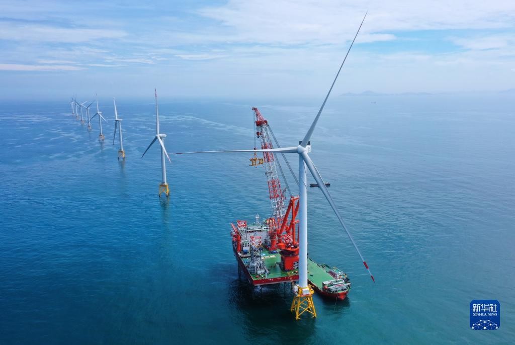 資料圖:這是16兆瓦超大容量海上風電機組安裝完成現場(無人機照片)。新華社圖片 一季度,風電光伏合計發電量達到5364億千瓦時,在全社會用電量中占比達到22.5%,較去年同期提高4.3個百分點(帶動非化石能源發電量占比達到39.8%,同比提高4.8個百分點)。受風電光伏快速增長并叠加一季度全社會用電量同比增速較低(2.5%)因素影響,風電光伏合計發電量較去年同期增加1110億千瓦時,大幅超出全社會用電量增量(582億千瓦時)。(完) 【編輯:彭玉婷】