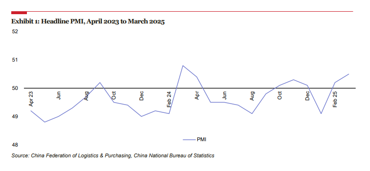 今年首季,中國製造業呈現復甦趨勢,采購經理人指數(PMI)自2月起持續處於50以上的擴張區間。中國製造業PMI在1月因春節假期抑制工廠活動降至49.1後,於2月升至50.2,并在3月進一步升至50.5。儘管部分受季節性因素驅動,自2月以來,PMI一直保持在擴張區間,表明中國製造業正在復甦。 自2月以來,製造業產出以相對較快的速度增長,產出指數從1月的49.1上升到2月的52.5,并在3月進一步上升到52.6。這一增長得益於整體市場需求的改善:新訂單指數從1月的49.2上升到2月的51.1,并在3月達到51.8。 工業產品價格繼續下降,出廠價格指數在整個季度都低於50的關鍵水平。產品價格的下降部分歸因於原材料價格的下降:輸入價格指數在1月和3月仍處於收縮區間。