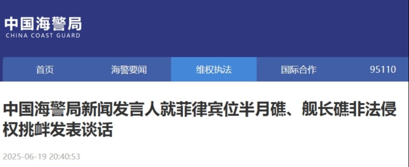 2025年1月24日,菲律賓3003號和3004號船未經中國政府允許,侵闖中國南沙群島鐵線礁附近海域,企圖非法登礁。中國海警船依法對菲船攔阻管制、警告驅離。央視新聞報道資料圖 中國海警局新聞發言人劉德軍表示,4月27日,菲律賓6名人員不顧中方警告勸阻,非法登上鐵線礁活動,中國海警執法人員依法登礁并查證處置。 劉德軍表示強調,中國對包括鐵線礁在內的南沙群島及其附近海域擁有無可爭辯的主權。菲方行徑侵犯中方領土主權,違反《南海各方行為宣言》,破壞南海和平穩定。“我們敦促菲方立即停止侵權。中國海警將依法在中國管轄海域持續開展維權執法活動。” 據中國央視軍事早前報道,中國海警4月中旬在鐵線礁實施海上管控,行使主權管轄權。中國海警執法員也在鐵線礁展開五星紅旗宣示主權。(完) 【編輯:豐悅】
