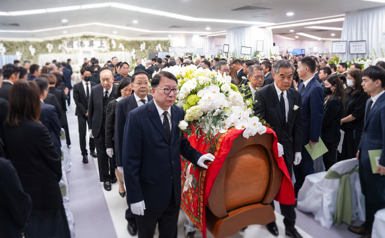 大殮以佛教儀式進行,10名政商界翹楚扶靈。(恒基兆業地產提供)