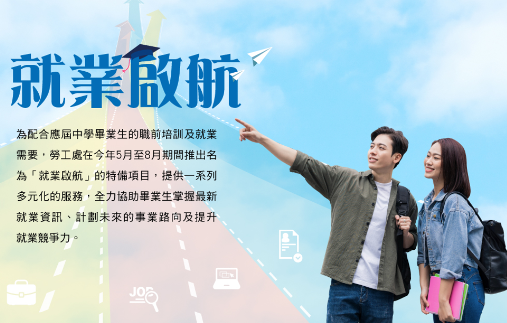 該專題網頁亦刊載勞工處舉辦的不同類型招聘會詳情,包括: “展翅青年就業計劃”招聘日:“展翅青年就業計劃”對象為15至29歲、學歷在副學位或以下的青年,獲聘學員會接受為期六至12個月的有薪在職培訓。 勞工處各區就業中心及行業性招聘中心招聘日:求職人士可即場與不同行業的僱主進行面試,加快求職過程;及大型招聘會,提供類型廣泛的職位空缺,當中不少適合中學畢業生申請。 發言人表示,為協助畢業生裝備自己,提升求職面試技巧及認識正確的工作價值觀,勞工處兩所位於旺角和葵芳的青年就業資源中心“青年就業起點”同時推出“職途Fresh Up”系列活動,舉辦一系列實用培訓課程。“青年就業起點”亦提供職業潛能評估及就業諮詢服務,讓畢業生及早規劃職業生涯。” 勞工處鼓勵打算投身職場的中學畢業生參加勞工處的“展翅青年就業計劃”,接受一站式全面的職前及在職培訓。計劃不設收生限額,費用全免,學員可享津貼。此外,亦首次推出“大灣區工作實習計劃”,讓18至29歲的學員於6月到大灣區內地城市實習一個月。實習計劃並提供預備課程、免費住宿及實習津貼等,截止報名日期為5月14日。詳情可瀏覽專題網頁。 “就業啟航”的最新資訊已上載其專題網頁,各項活動的資料亦可參考附表。如欲查詢詳情,可致電勞工處24小時熱線2717 1771(此熱線由“1823”接聽)。(完) 【編輯:譚暢】