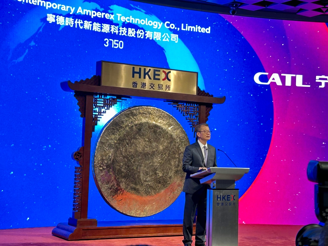 香港中通社圖片 第一是它反映了企業和投資者對香港股票市場的信心。陳茂波說,今年以來,港股出色的表現和港元的強勢,蓬勃了市場的氛圍,為新股市場提供了正面的預期。寧德時代的上市,把這些正面因素結合得更為突出,相信能進一步提升港股的流動性,促進市場結構的優化。在目前地緣政治紛繁複雜、各地資金積極作多元化配置的時候,內地和其他地方企業利用香港這個平台上市集資、壯大發展,正值其時。