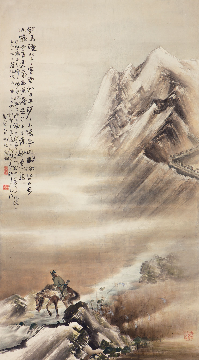 高劍父作品《飲馬渡關圖》,中國畫,1917,廣東省博物館藏。