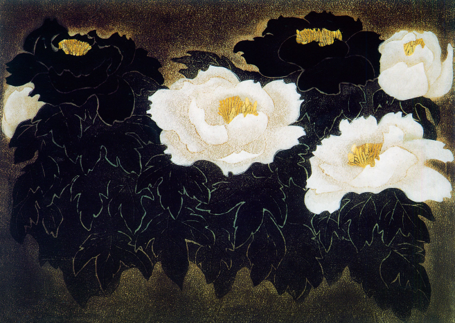 鄭爽作品《黑牡丹、白牡丹》,版畫,1984,廣東美術館藏。