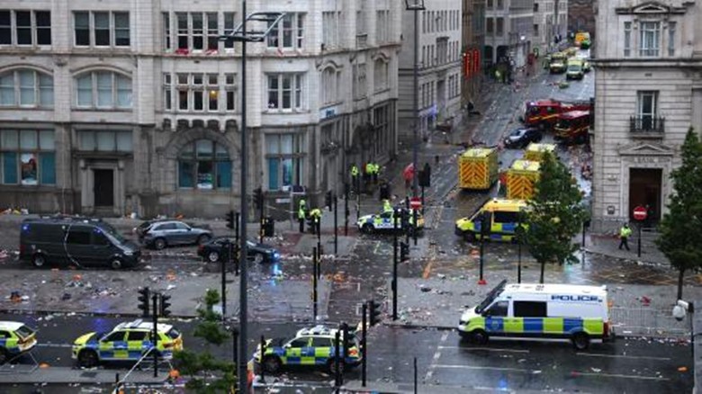 2025年5月26日,利物浦球迷舉行勝利游行期間多人被車撞倒,緊急救援人員趕赴現場。 圖自社媒X網站 據英國媒體報道,警方發言人此前說,當地時間下午6時剛過,警方接到報警稱一輛汽車在利物浦沃特街衝撞多名行人,肇事車輛隨後在現場被攔停。 當地警方表示,肇事車輛在現場被攔下,嫌疑人為一名來自利物浦地區的53歲英國白人男子,現已被拘留,事故具體原因仍在調查,并呼籲民眾不要再做任何猜測,也不要在網上分享“令人痛苦的內容”。 利物浦默西賽德郡警方助理警察局長珍妮・西姆斯(Jenny Simms)在新聞發佈會上表示,已將此事件定為重大事件,但該事件不被視為恐怖主義事件,警方認為這是一起孤立事件,目前并未尋找其他嫌疑人。