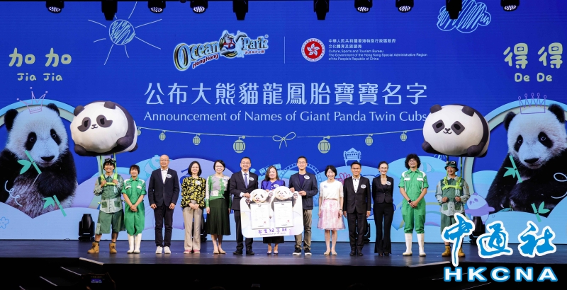 在港出生大熊貓龍鳳胎幼崽取名為“加加”“得得”分享到: